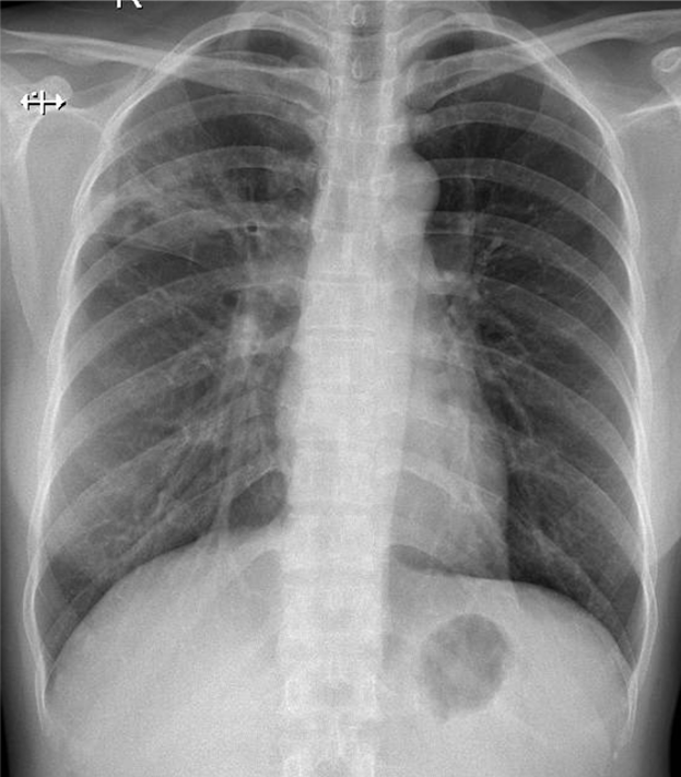 1-Thâm nhiểm phế nang thùy trên phổi (P) => Viêm phổi