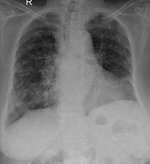 1-Thâm nhiểm phế nang lan tỏa hai phổi (P)>(T) => VIÊM PHỔI