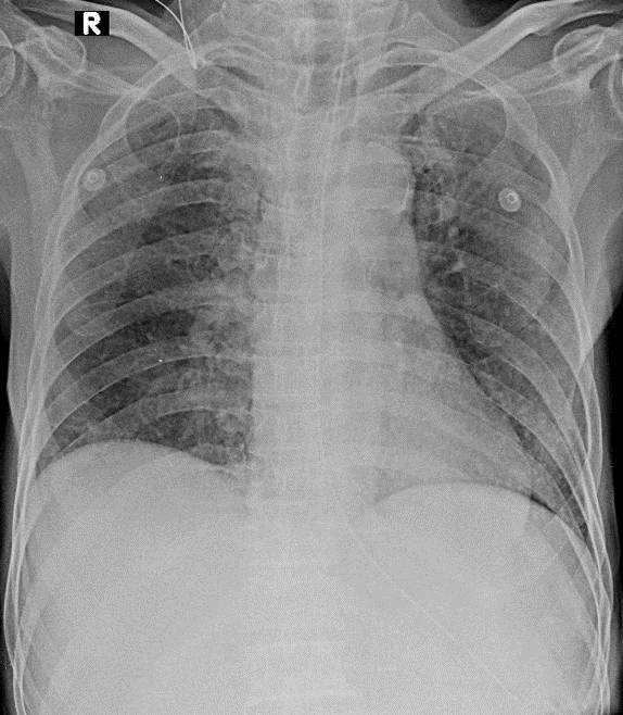 1-Thâm nhiễm mô kẻ rải rác hai phổi (P)>(T)=> VIÊM PHỔI