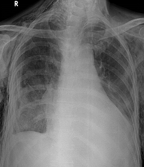 1-Tổn thương phế nang lan tỏa thùy dưới hai phổi=> Viêm phổi, dập phổi 2-Tràn dịch màng phổi (P) 3-Tràn khí màng phổi (T) lượng ít 4-Tim to 5-Gãy cung sườn sau (P): 2->6 6-Tràn khí dưới da thành ngực và vùng cổ hai bên