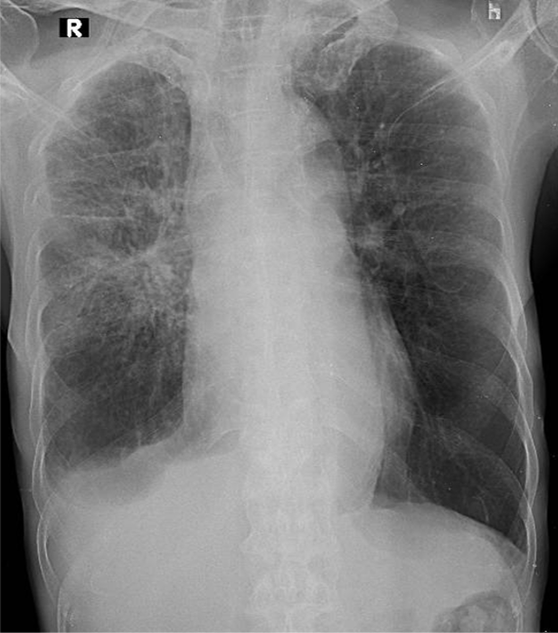 1-Thâm nhiễm mô kẻ rải rác phổi (P) => Viêm phổi 2-Khí phế thũng rải rác hai phổi 3-Tràn dịch màng phổi (P)