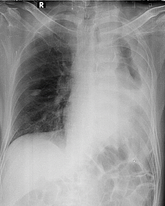 1-Tràn dịch màng phổi (T) lượng nhiều 2-Cung động mạch chủ đóng vôi