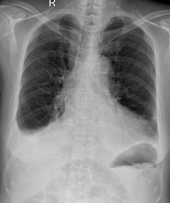 1-Tràn dịch màng phổi (P) lượng ít 2-Cung động mạch chủ đóng vôi 3-Tim (T) lớn