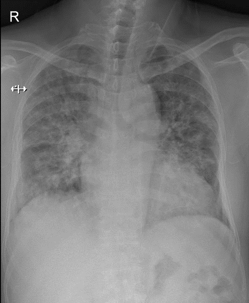 1-Thâm nhiểm phế nang lan tỏa hai phổi=> Viêm phổi 2 -Tim (T) lớn