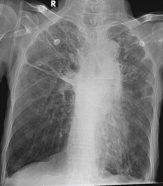 1-Xơ rải rác hai phổi 2-Khí phế thũng rải rác hai phổi đáy > đỉnh 3-Dày dính màng phổi hai bên 4-Tràn dịch màng phổi hai bên lượng ít 5-Cung động mạch chủ đóng vôi
