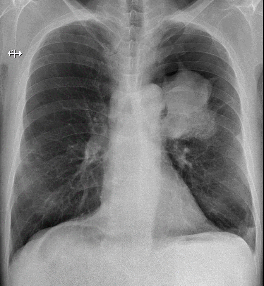 1-U thùy trên phổi (T) vùng cạnh rốn 2-Tràn khí màng phổi (T) vùng đỉnh