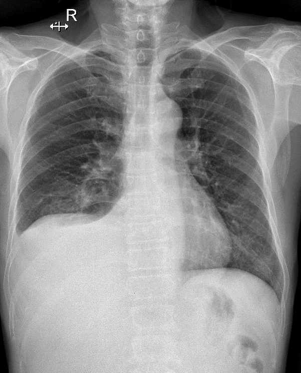 -Thâm nhiểm phế nang thùy dưới phổi (P) => Viêm phổi -Tràn dịch màng phổi (P) lượng ít